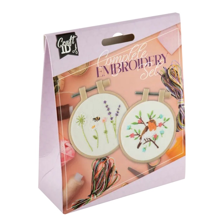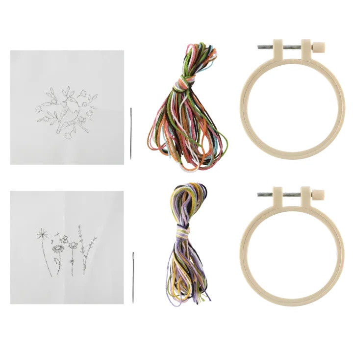 CRAFT ID Mini vyšívací sada – 2 kroužky Pták a květiny