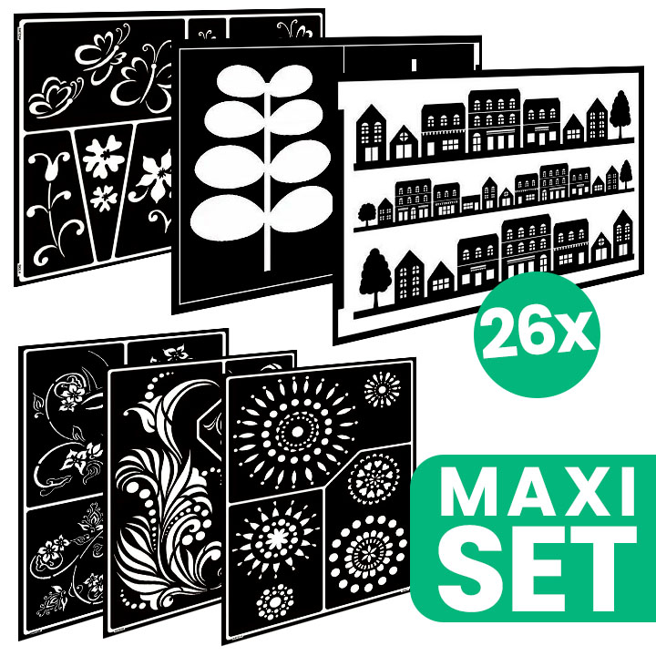 Velká sada FOLK ART malířských šablon - 26 ks různých velikostí