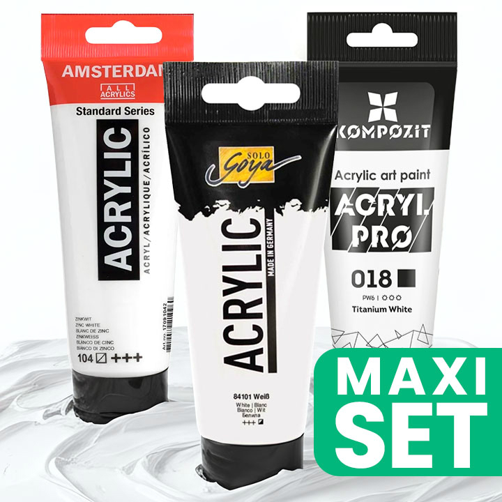 Výhodná sada 3 bílých akrylových barev