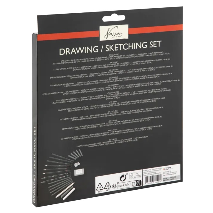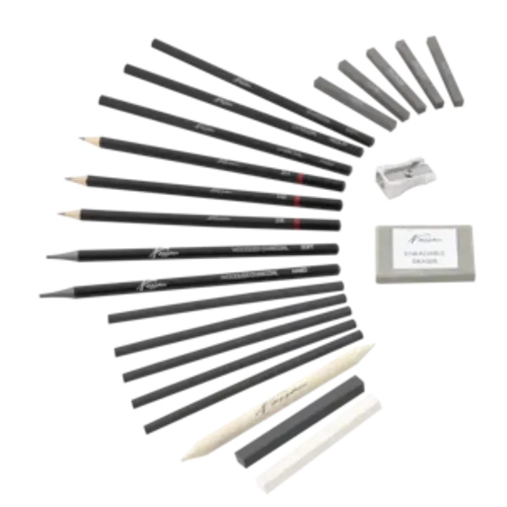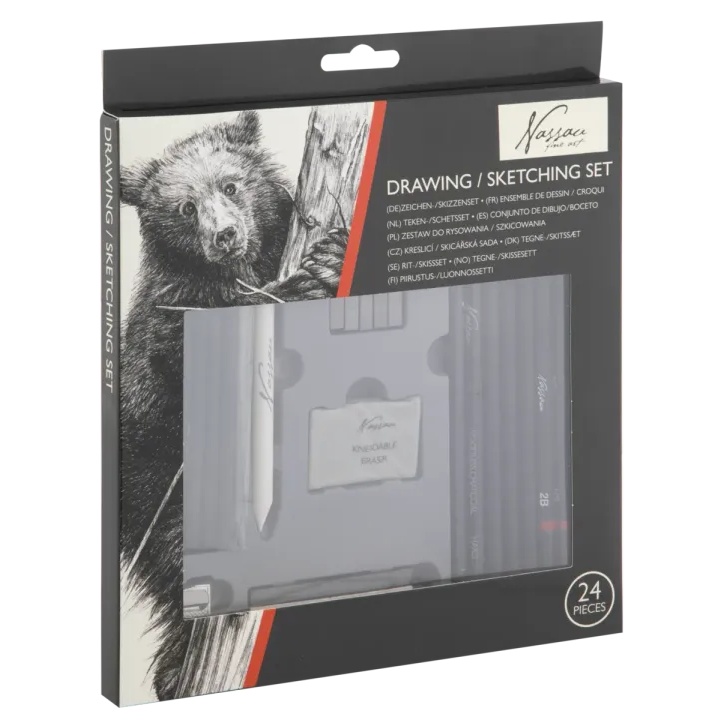 Sada pro kreslení/skicování Nassau Fine Art, 24 dílů, je nezbytnou kolekcí pro umělce, ilustrátory a amatérské kreslíře, kteří chtějí prozkoumat svět kreslení a skicování. Tato komplexní sada, navržená tak, aby poskytla vše potřebné jak začátečníkům, tak pokročilým umělcům, obsahuje vyvážený sortiment grafitových tužek, uhlových tužek, nástrojů pro prolínání a gum – ideální pro vytváření detailních skic, portrétů nebo expresivního stínování. Vysoce kvalitní grafitové tužky zajišťují hladké a konzistentní linie, zatímco uhlové tužky a tyčinky nabízejí bohaté, hluboké tóny pro dramatické efekty. Součástí balení je hnětatelná guma, která umožňuje přesné zesvětlování a prolínání a papírový pahýl pomáhá vytvářet jemné přechody a textury. Tato sada, dodávána v elegantní, uspořádané krabičce, je ideální pro použití ve škole, ateliéru nebo na cesty. Ať už skicujete krajiny, postavy nebo experimentujete s tonálními studiemi, sada pro kreslení Nassau Fine Art poskytuje vše potřebné k tomu, abyste své kreativní nápady vdechli životu.
