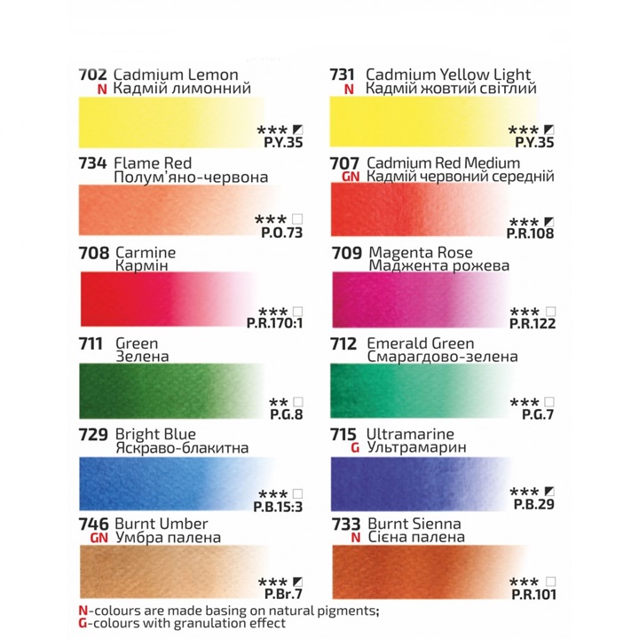 Monopigmentované akvarelové barvy ROSA Gallery jsou ideální pro umělce, kteří hledají kvalitu a čistotu barev. Sada obsahuje 12 akvarelových barev, z nichž každá je vyrobena z jednoho pigmentu, což zajišťuje dokonalé čisté směsi a umožňuje experimentování s odstíny. Díky vysokému stupni světlostálosti jsou barvy odolné proti vyblednutí a zajišťují dlouhodobou trvanlivost uměleckých děl. Akvarely jsou vyrobeny z arabské gumy a prémiových jemně mletých organických a anorganických pigmentů, které zajišťují dokonalou přilnavost a hladký tok barev . Tento praktický a esteticky přitažlivý obal je vhodný pro umělce pracující doma nebo ve studiu a zřídkakdy přepravující materiály. Vysoká koncentrace pigmentu v každé barvě umožňuje umělcům vytvářet odstíny od světle transparentních až po plně neprůhledné. Sada akvarelových barev ROSA Gallery Monopigmented je skvělou volbou pro umělce, kteří ve svých uměleckých technikách upřednostňují kvalitu a čistotu.